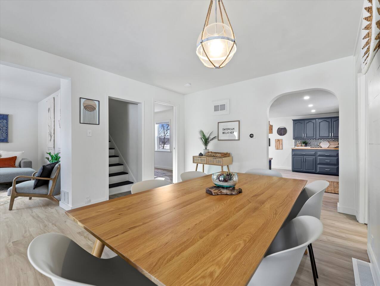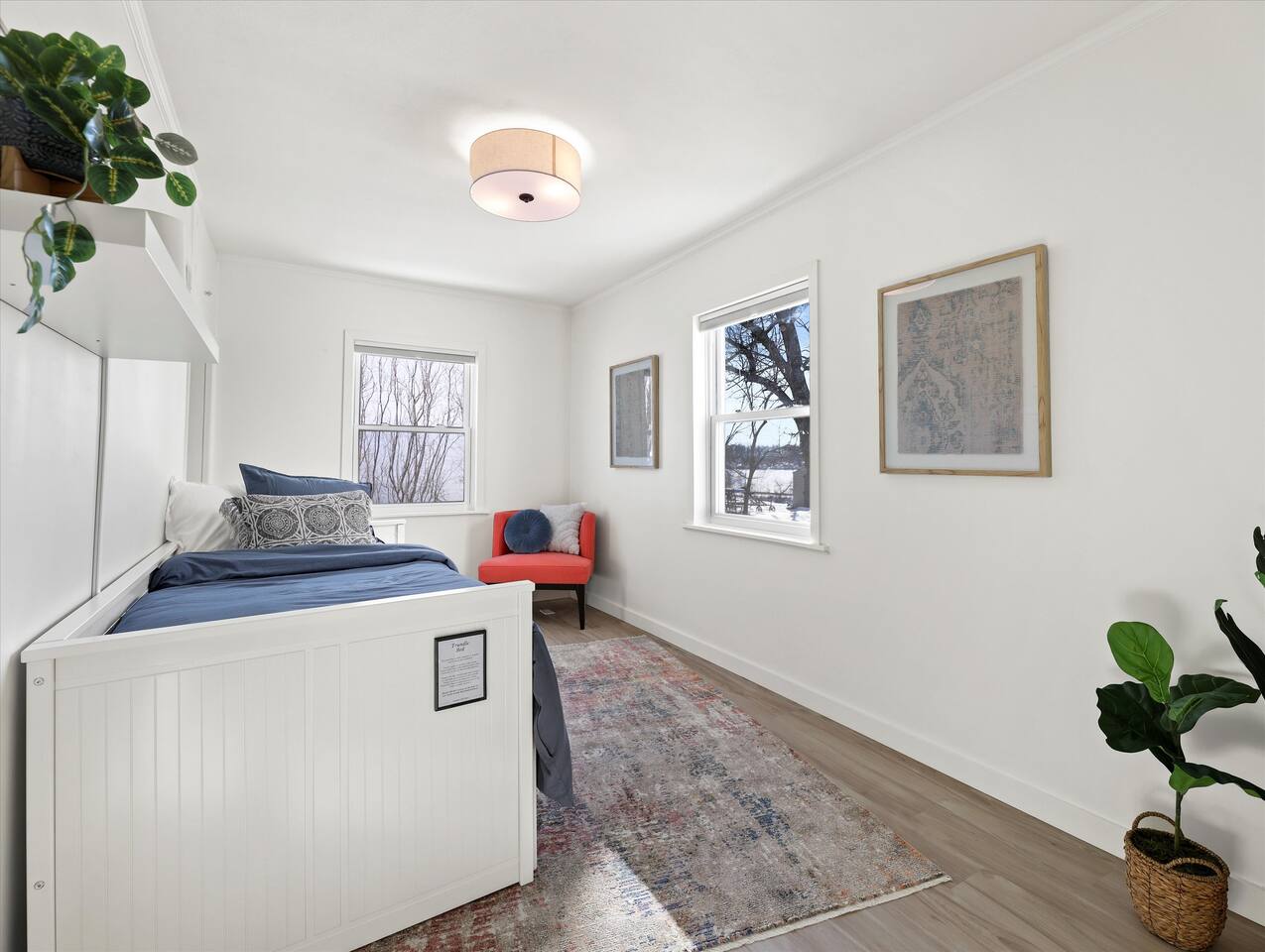 The Pewaukee Lake House has been fully renovated to bring lake vibes throughout! 🏡🏡This relaxed retreat is part of another rental property (similar to a duplex) but with the layout you will hardly notice the other guests as there is no shared living space, minimal shared walls and private entries. To view the layout of both rentals, please view our host profile. 🚂From time to time, you may also hear the train go through and blow the horn. White noise machines are provided if you need it! 🏡THE SPACE Step into a bright, modern interior designed for comfort and convenience. You’ll find: FIRST FLOOR 🍴Full kitchen, stocked with cooking utensils, serving ware and large dinning table 🛋️Large living room with Smart TV ☕️Complimentary coffee/ tea station 🧺In-suite washer and dryer + iron/ironing board 🛁Bathroom stocked with toiletries - shampoo/conditioner, soap, q-tips, hair dryer, first aid kit 💤Bedroom with trundle bed (two twin beds) 😌Custom three seasons room SECOND FLOOR 💤King bedroom with Stearns & Foster mattress and plush bedding 💤Queen bedroom with Stearns & Foster mattress and plush bedding ADDITIONAL AMENITIES 😎Back patio with lounge couch, umbrella for shade, BBQ grill and Pewaukee lake views! 🛜High speed internet 💻Workstation desk with chair 🛏️Fresh linens + clean towels 🚘Dedicated parking stalls 🆒Central air conditioning 📍LOCATION PERKS Just a short walk or drive to: •Pewaukee Lakefront Park for beach days and lakefront strolls  •Local shops, cafes, and eateries in Pewaukee •Scenic walking & biking around Pewaukee Lake 💍We are also within 30 minutes of countless stunning wedding venues and we’ve hosted countless wedding parties. We’d love to be part of your special day!! 🥂The Carriage House 🥂The Commodore 🥂Red Circle Inn 🥂Lac La Belle 🥂Golden Mast 🥂Western Lakes ➡️Traveling with a pet 🐶or your preferred dates taken? Browse our host profile or reach out for l details on other listings in the area